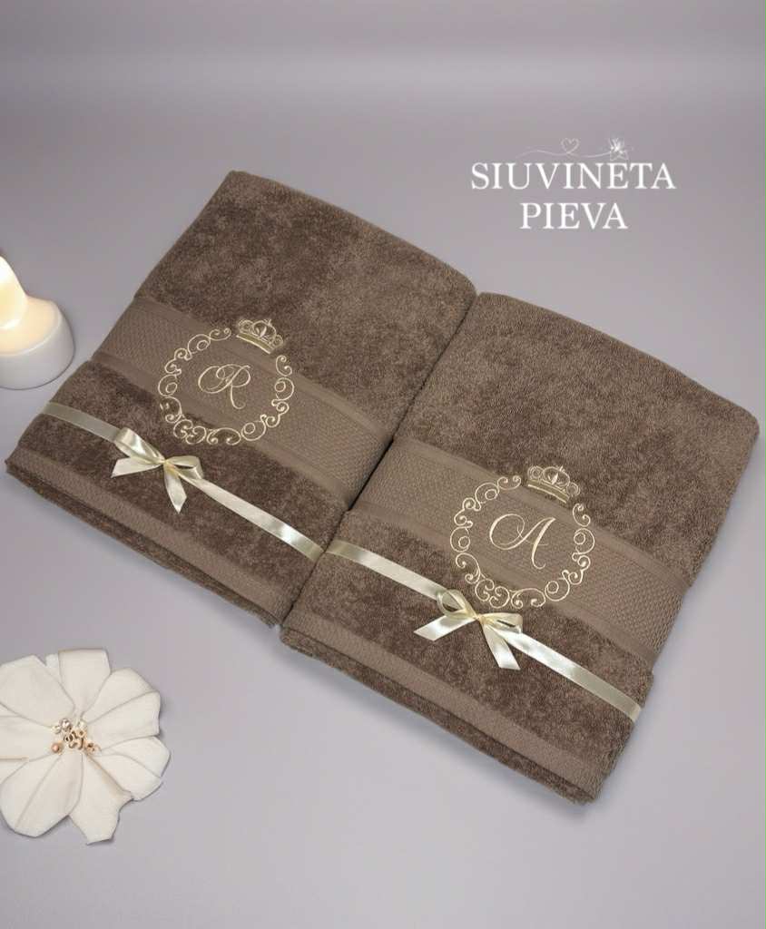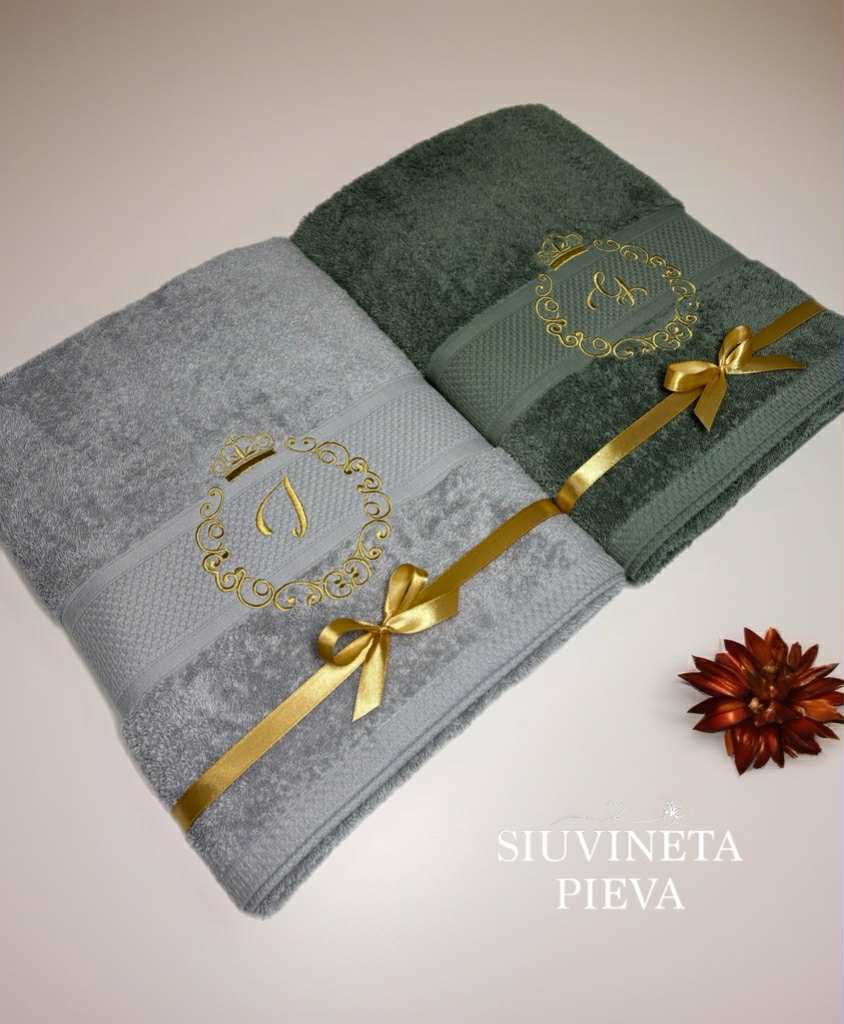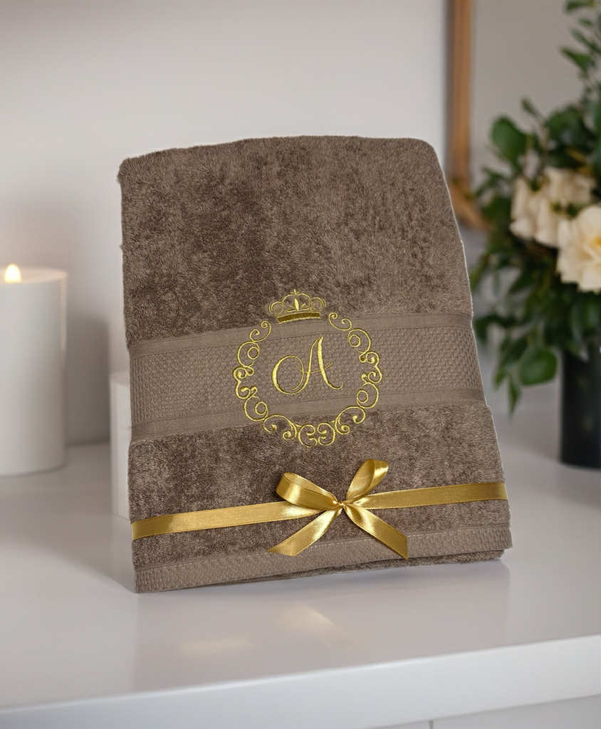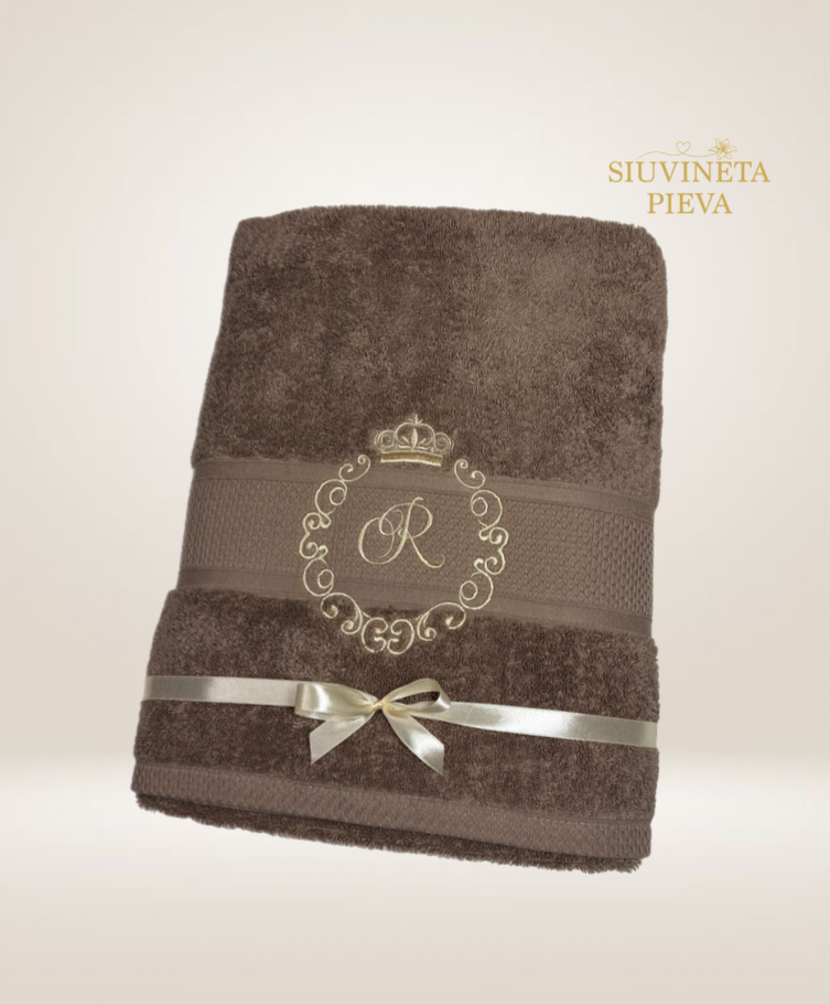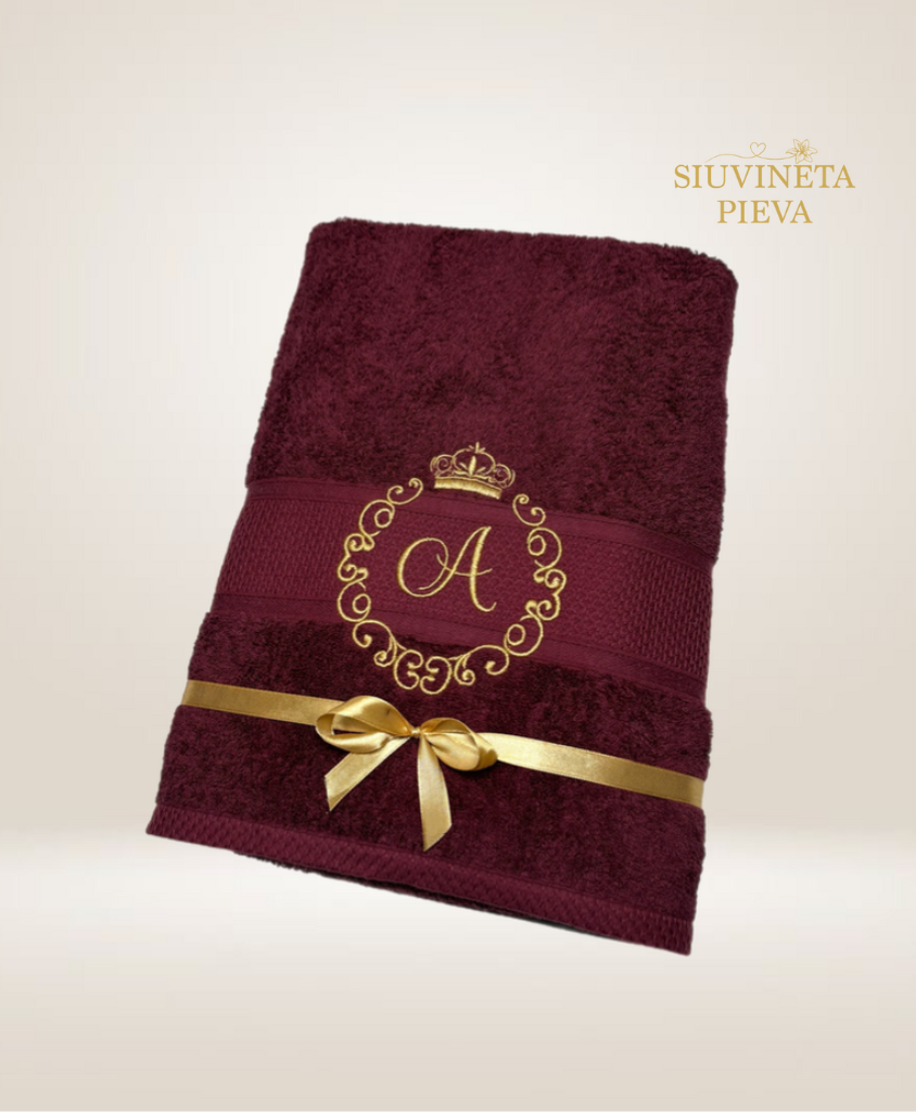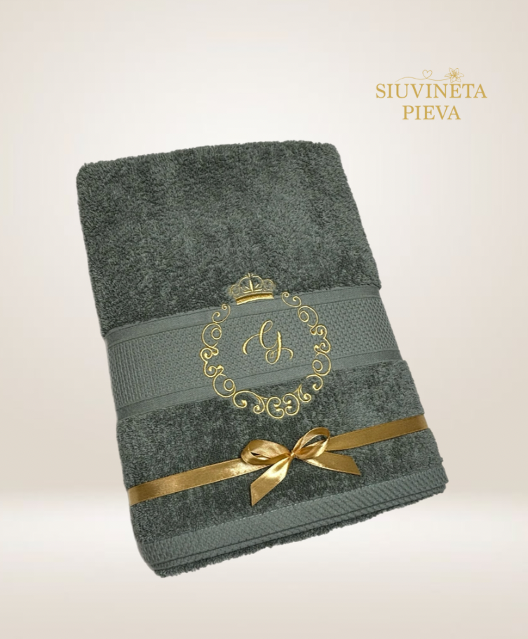 Siuvinėtas rankšluostis su Jūsų pasirinktu inicialu, puoštas lengvu ornamentu