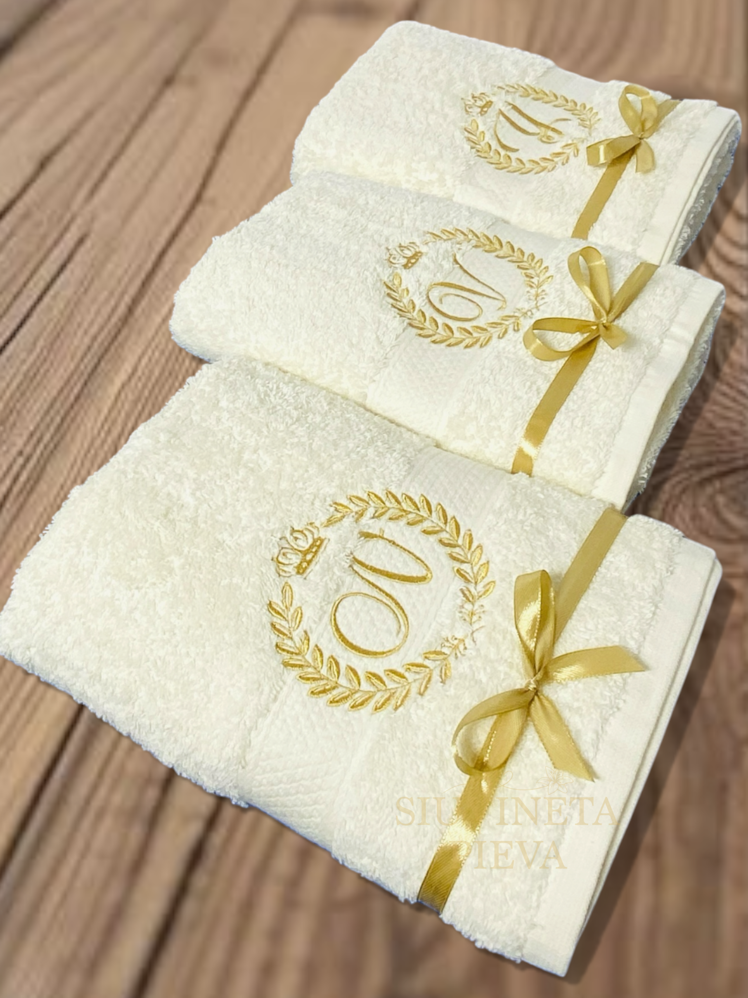Siuvinėtas rankšluostis su Jūsų pasirinktu inicialu, puoštas klasikiniu vainikėliu su karūna.