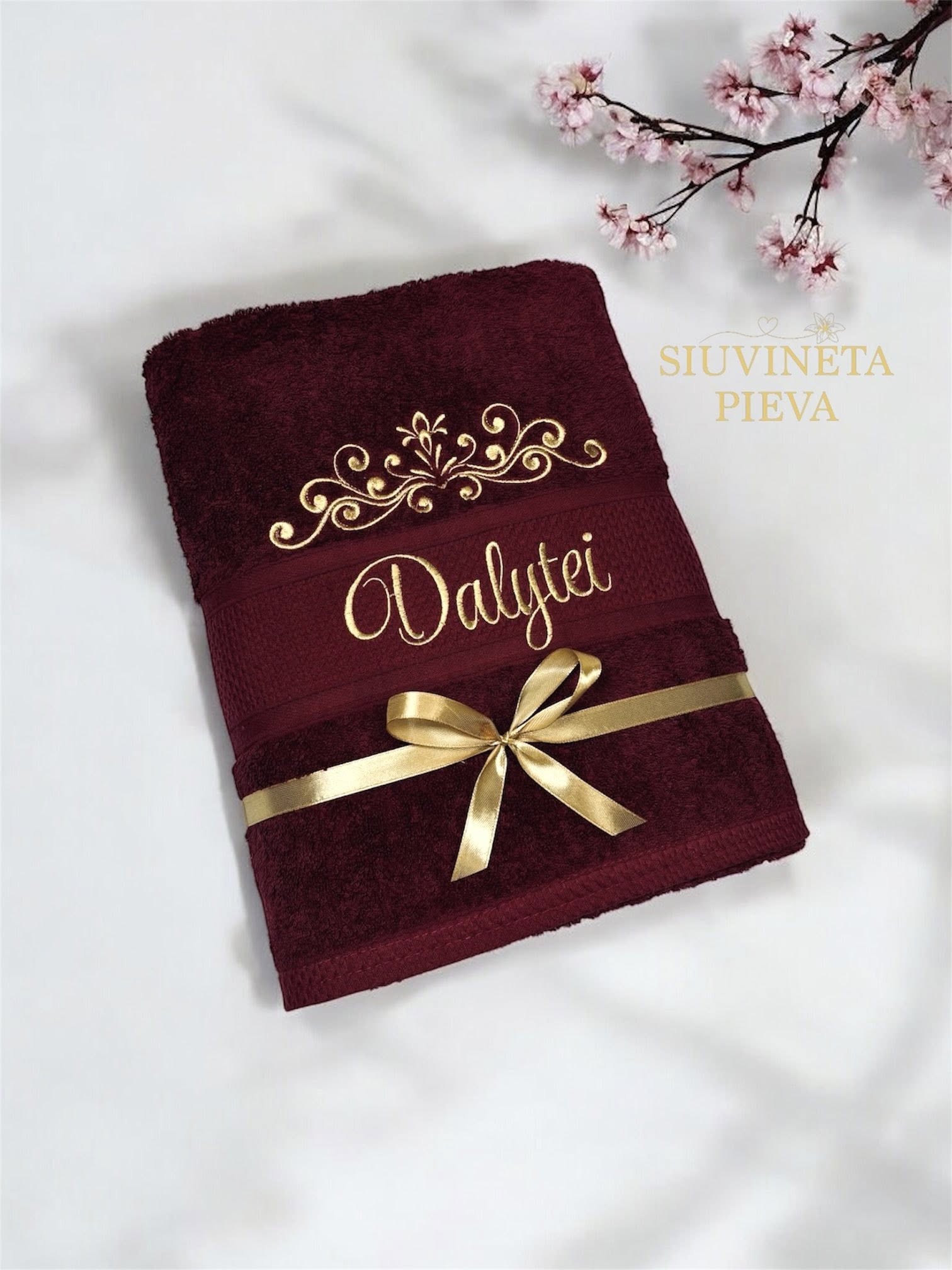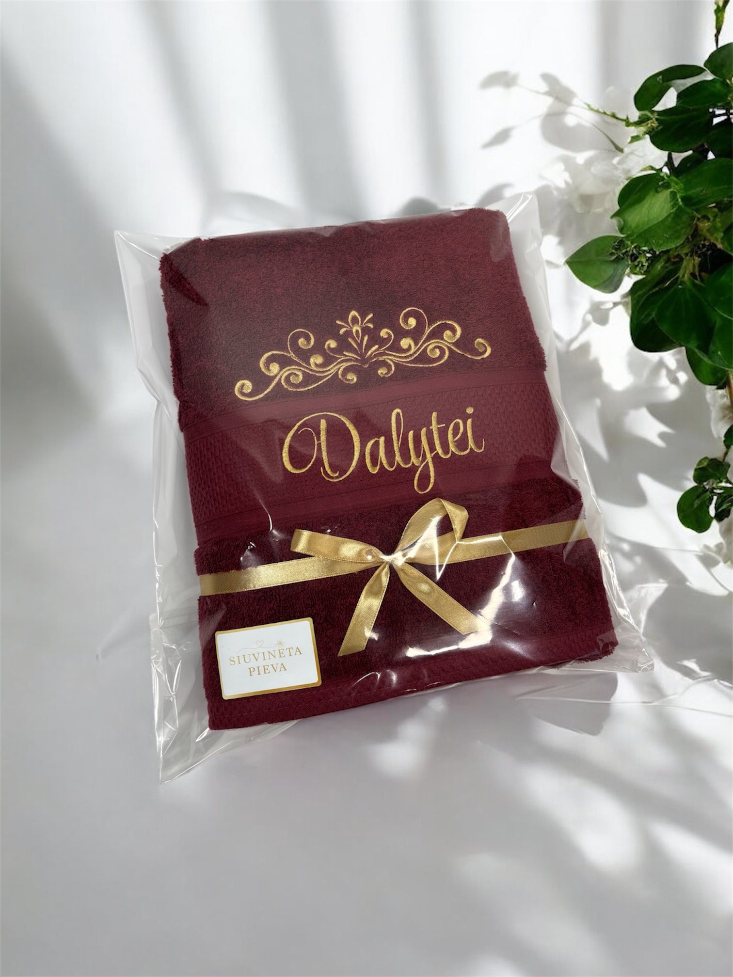Vonios rankšluostis, išsiuvinėtas Jūsų pasirinktu vardu ir ornamentu.