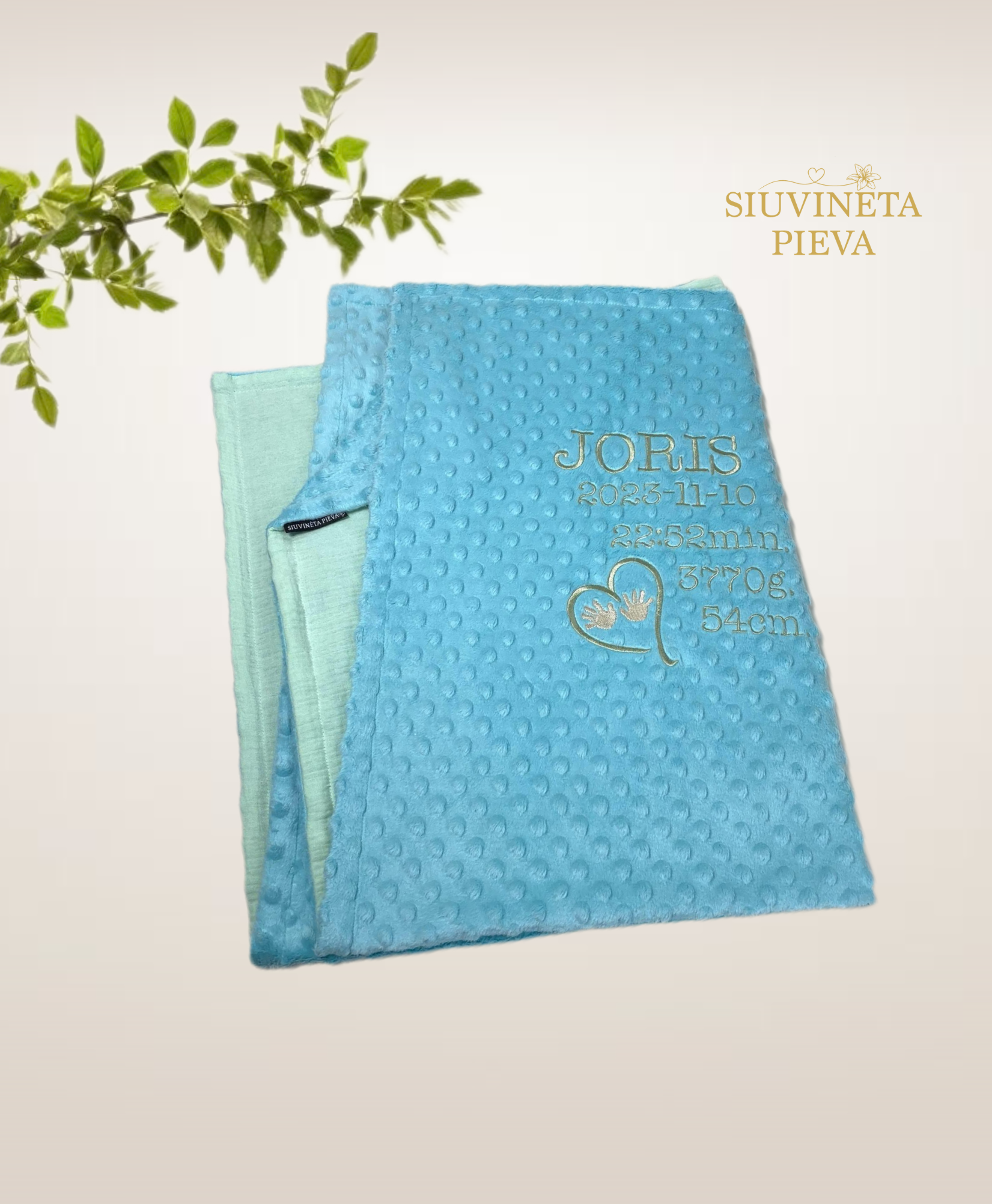 Pleduko išorinė dalis - minky audinio, o vidinė pusė švelnaus muslino audinio. Tai puiki dovana krikštynoms, palankynoms ar gimtadieniui.