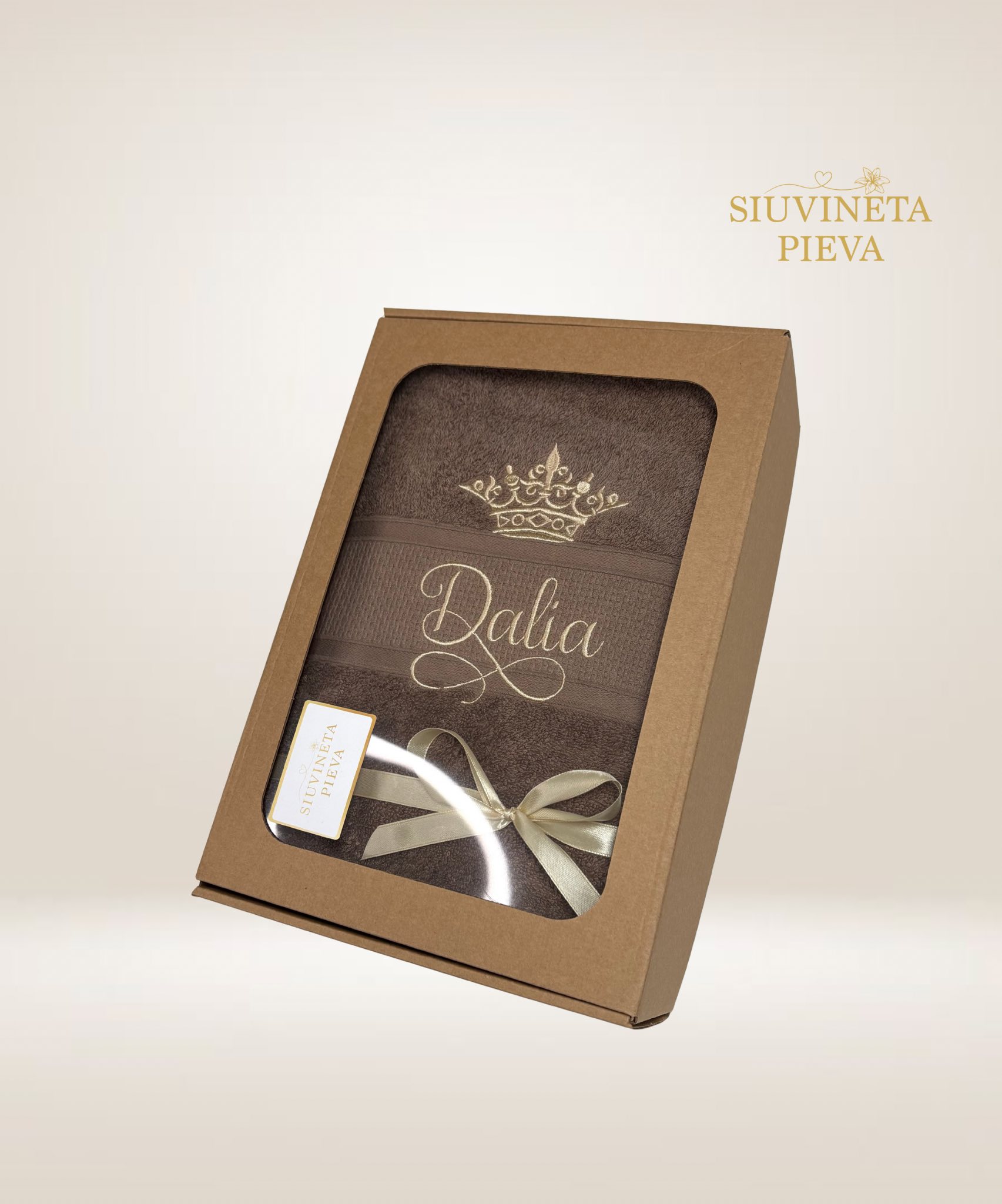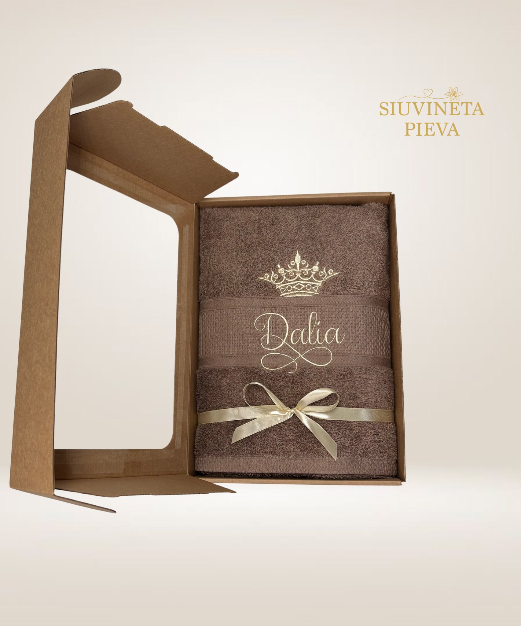 Vonios rankšluostis, išsiuvinėtas Jūsų pasirinktu vardu ir karūna.