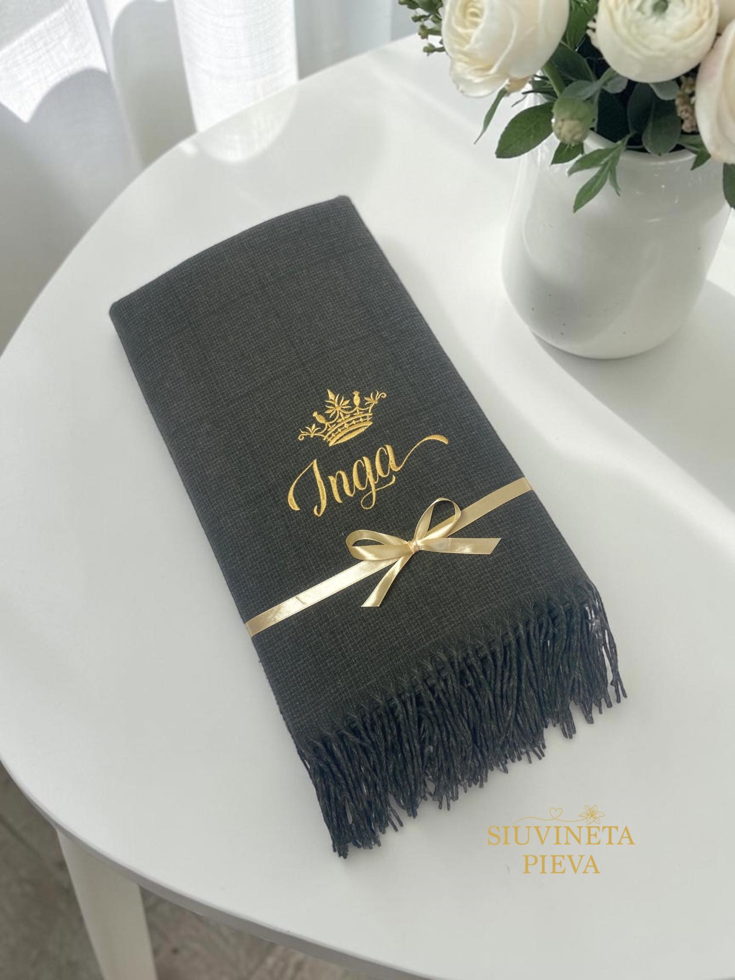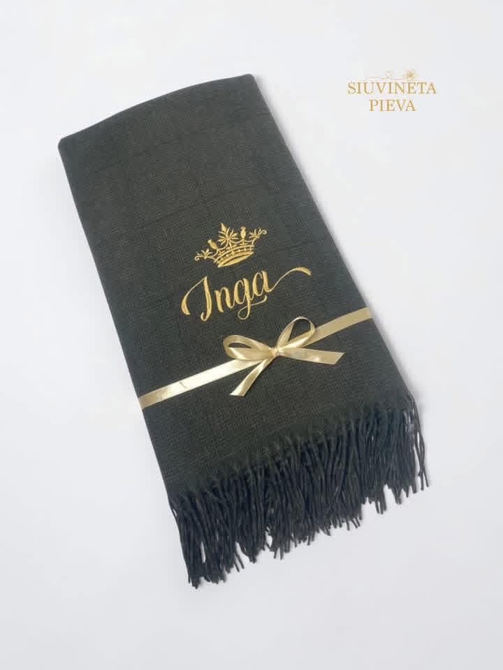 Pledai, išsiuvinėti pasirinktu vardu su karūna. Gaminami pagal užsakymą.